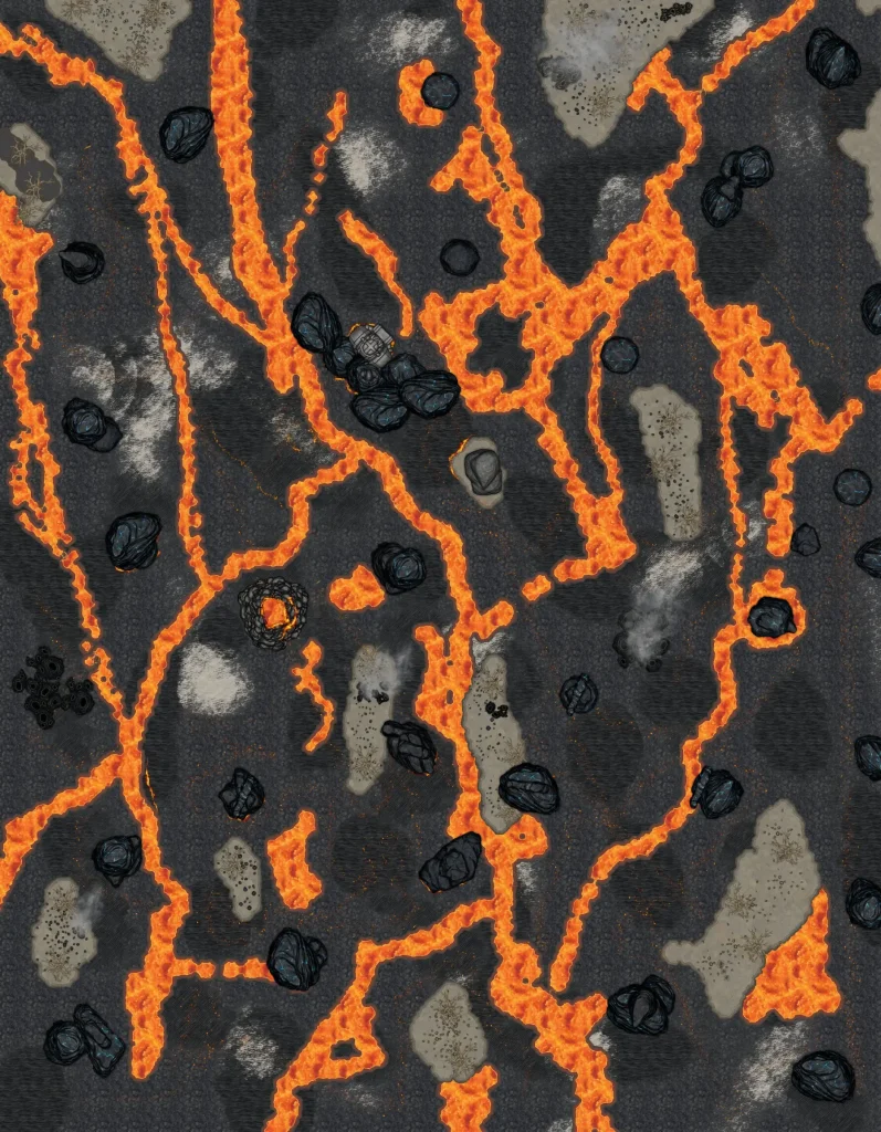 A massive map transforms the game options for encounters from a small static locations into a dynamic battlefield. Massive maps allows both the Game Master and players to use motion, distance, and scale to evoke a sense of space. Most published adventures for D&D 5e, are filled with compact maps. Take Descent into Avernus, which introduces the first layer of Hell—a scorched wasteland of rage and infernal machines. The book’s maps are functional, but none capture the sprawling chaos of war rigs tearing across the desert. Sure there is theater of the mind but not everyone wants that.